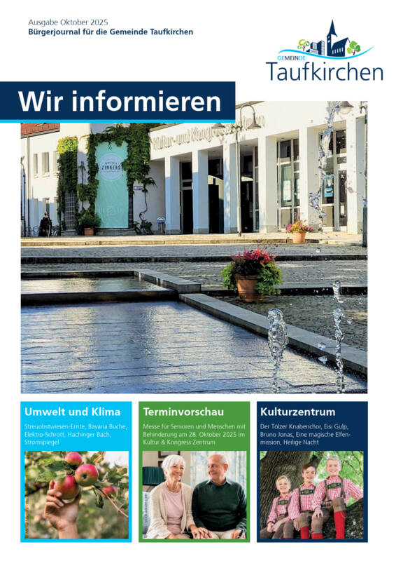 Das Bürgerjournal „Wir informieren“ erscheint 10 mal jährlich und informiert zu aktuellen Geschehnissen. Vereine haben die Möglichkeit, Veranstaltungen oder Berichte über das Vereinsleben im Gemeindeblatt zu veröffentlichen. Beiträge für das Bürgerjournal werden von Frau Kurz vom REBA-VERLAG entgegengenommen. Kontakt: info@reba-verlag.de, 08161/787 1422.